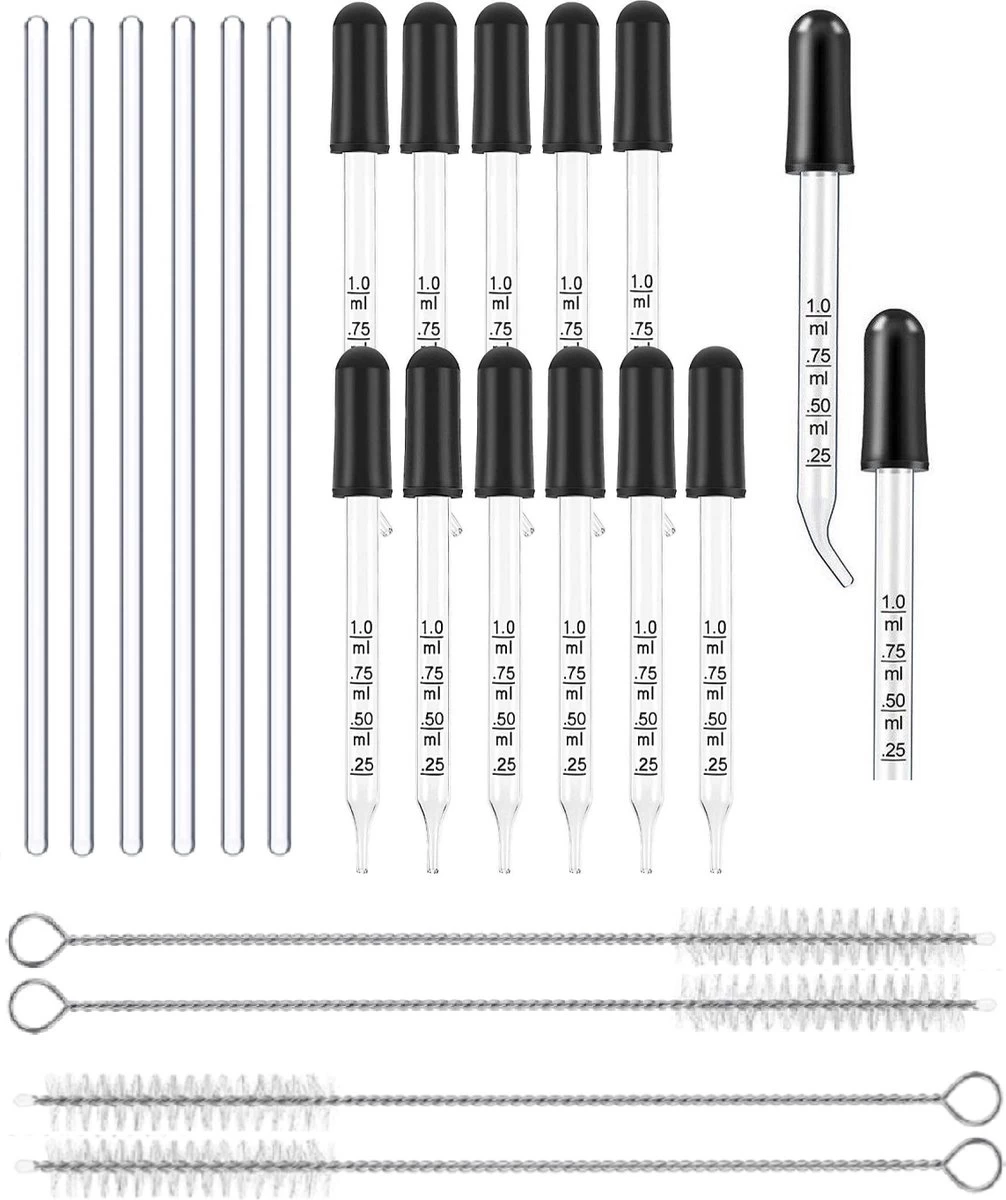- De capaciteit van de oogdruppelaars zijn 1 ml. Ze hebben helder glas en zijn gemakkelijk te lezen met markeringen van 0,25 ml, 0,50 ml, 0,75 ml en 1 ml. Waardoor het gemakkelijk en nauwkeurig is om olie en vloeistof te meten.