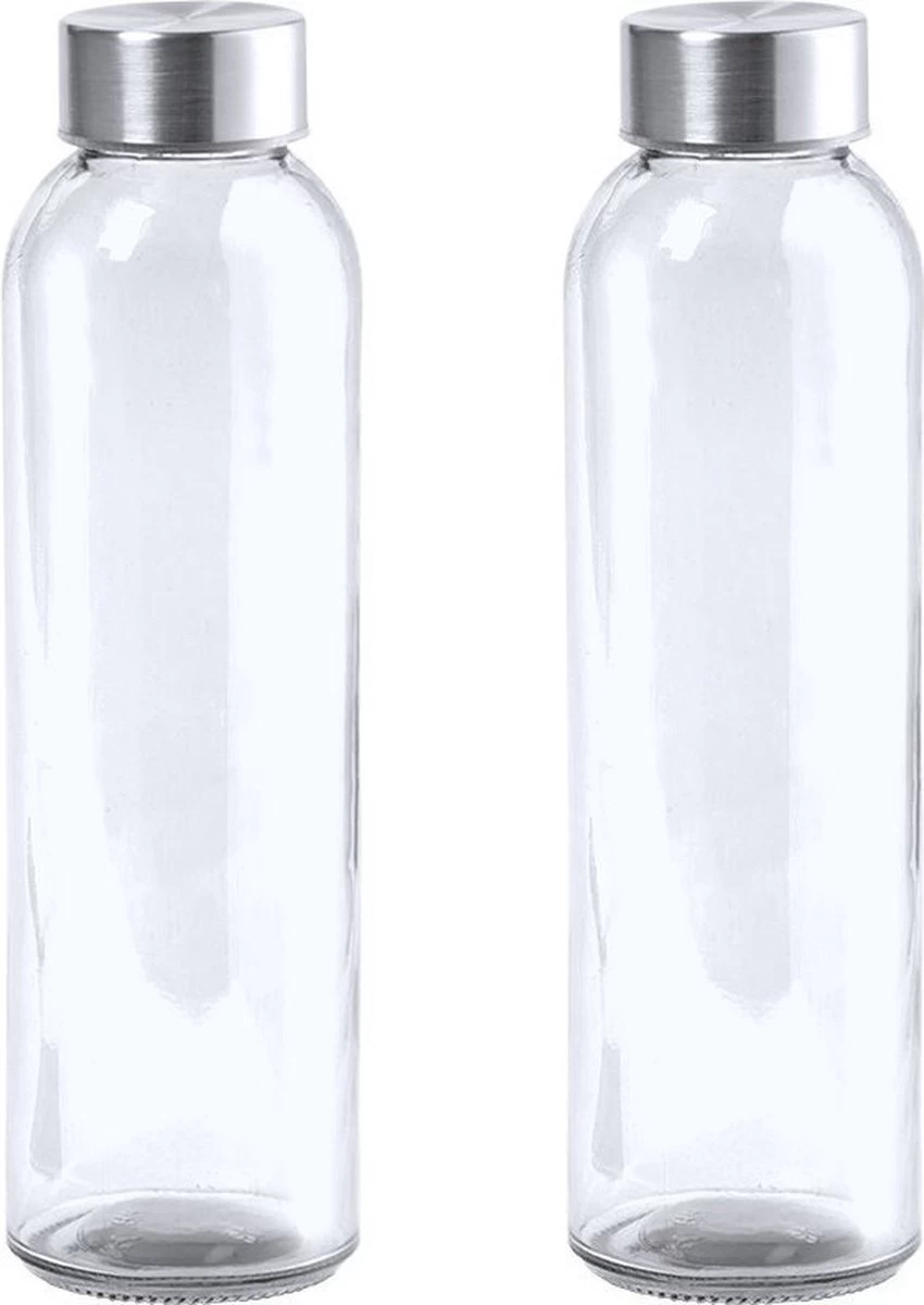 2x Stuks glazen waterfles/drinkfles transparant met Rvs dop 550 ml. Afmeting: ca. D6,5 x H22 cm. Inhoud: ca. 550 ml, 55 cl. Gewicht: ca. 250 gram. Materiaal fles: verhard glas. Bpa-vrij: ja. Geschikt voor magnetron: nee. Geschikt voor vaatwasser: ja, de dop niet. Geschikt voor vriezer: nee. Wordt geleverd in een kartonnen doosje.