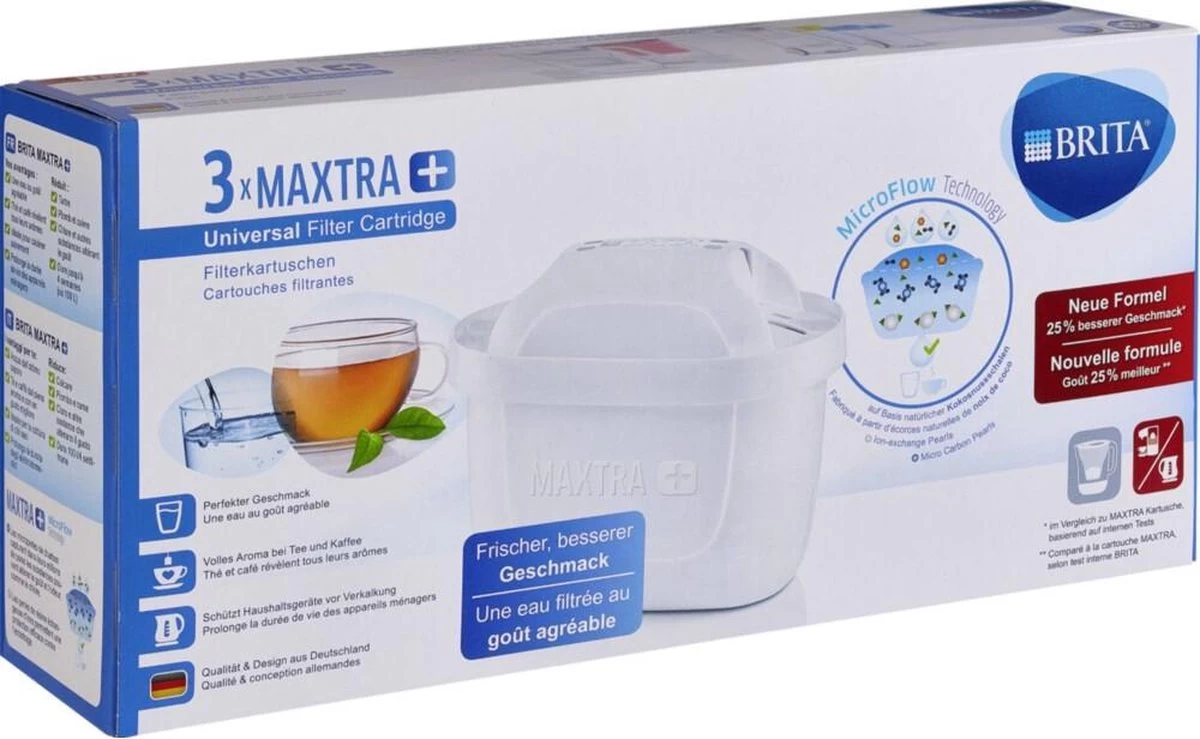 Vermindert kalk en andere geur- en smaakverstorende stoffen voor een heerlijke, natuurlijke smaak. Absorbeert metalen zoals koper en lood. Met innovatieve Maxtra+ MicroFlow Technology met verbeterde filterprestaties. Op basis van natuurlijke kokosnootschalen voor een nog krachtigere filtratie. De nieuwe formule zorgt voor een smaakverbetering van 25%. Zuiverder, frisser smakend water. Met Micro Carbon Pearls die smaak en geur verstorende stoffen absorberen, zoals chloor. Ion-Exchange Pearls verzekeren een betrouwbare bescherming tegen kalkaanslag, waardoor de levensduur van huishoudelijke apparaten wordt verlengt.