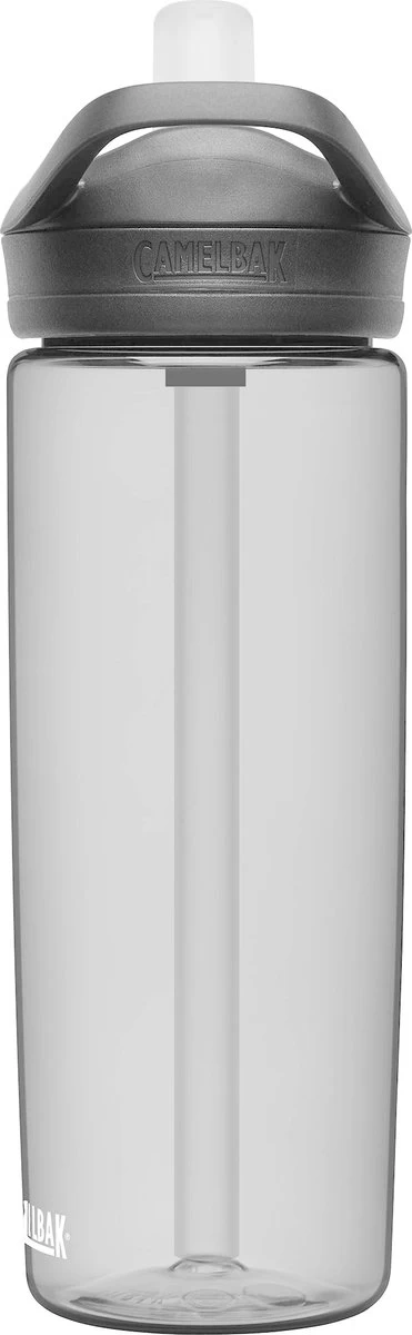 De drinkfles CamelBak Eddy + heeft een ideale drinktuit die zich opent door er zachtjes op te bijten. De nieuwe drinktuit van de Eddy + geeft 25% meer per slok dan de voorgaande modellen. De siliconen tuit is verbonden aan een rietje waardoor de vloeistof omhoogkomt als je zuigt. Je hoeft de fles dus niet te kantelen als je drinkt. Handig in de auto of op de fiets, zo houd je je blik gericht op het verkeer en dat is wel zo veilig. De drinktuit sluit geheel af zodra je er niet meer op bijt. CamelBak Eddy is verkrijgbaar in de maten 600, 750 en 1000 ml. Als de fles omvalt is dat geen probleem, de vloeistof wordt door de drinktuit goed tegengehouden. De dop is 100% lekvrij. Je kunt de drinkfles dus met een gerust hart op je bureau zetten, naast je computer. Gemaakt van Tritan Renew bestaande uit 50% gerecycled materiaal.