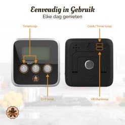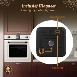 Let op: Let op! Alleen de roestvrijstalen sonde is hittebestendig. Laat dus niet de gehele thermometer in de oven of pan liggen.