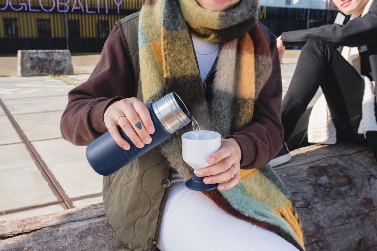 De oceanen redden. Het is een missie die 365 dagen per jaar doorgaat. De wegwerpflessen die onze oceanen vervuilen trekken zich er namelijk niks van aan of het buiten bloedheet of ijskoud is. En jij nu ook niet meer. Dankzij de nieuwe Dopper Insulated: de perfecte handlanger waarmee jij voor kraanwater kiest. Bij regen of zonneschijn (of een halve meter sneeuw), deze thermosfles houdt je water 9 uur warm of 24 uur koud. Bonus: het fles-en-beker-in-één-ontwerp maakt ‘m makkelijk om te vullen en schoon te houden. Voor jou, of je vaatwasser (tot 65 graden). Indrukwekkend? Zeker weten.