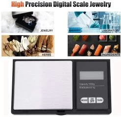 Zeer nauwkeurig precisie weegschaaltje voor het wegen van kleine voorwerpen zoals sieraden, kruiden of andere voedingssupplementen. Dit weegschaaltje weegt op de 0,1 gram nauwkeurig en tot maximaal 100 gram. Het weegschaaltje werkt op 2 AAA batterijen (niet inbegrepen). Het lcd scherm is voorzien van een blauwe ledverlichting.
