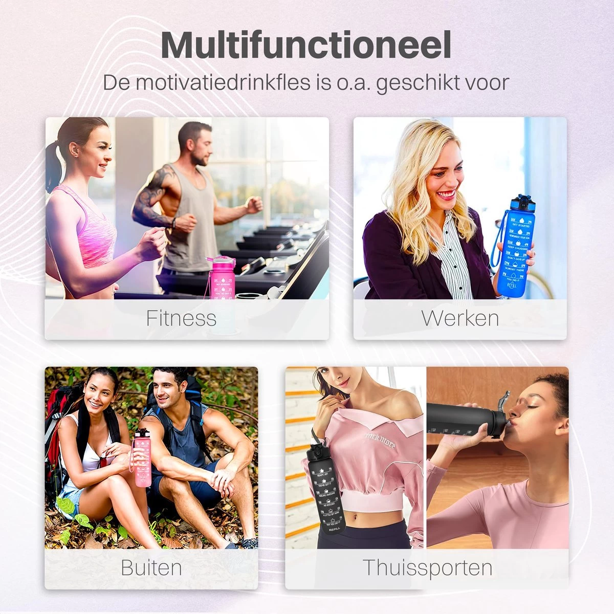 Innovaland Motivatie Waterfles Oranje En Blauw – 1 Liter Drinkfles – Waterfles Met Rietje – Waterfles Met Tijdmarkering – BPA Vrij – Volwassenen – Kinderen – Vaderdag – Geschenk – Cadeau Voor Man – Vrouw – Mannen – Vrouwen