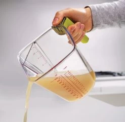 Met deze maatbeker van Joseph Joseph heb je geen andere maatbeker meer nodig, want met deze kun je zowel grote hoeveelheden afmeten, als kleinere. Aan de zijkant van de grote maatbeker is namelijk een tweede reservoir gemaakt om kleine hoeveelheden vloeistoffen in af te kunnen meten.