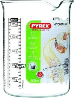 Voor het afmeten van hoeveelheden ingrediënten een keukenhulp nodig die dit precisiewerk aan kan. Dit Kitchen Lab maatglas van Pyrex gaat je hierbij zeker helpen. Dit maatglas is speciaal ontwikkeld om nauwkeurig hoeveelheden af te meten. Deze krasvrije maatglas heeft een fijne schenktuit, waardoor je niet alleen precies, maar ook hygiënisch kunt werken. Daarnaast kan dit maatglas na gebruik met gemak worden gereinigd in de vaatwasser. En ook gebruik in de oven (tot 300°C) is voor dit praktische product geen probleem. Dit maatglas heeft een inhoudsmaat van 50 cl.
