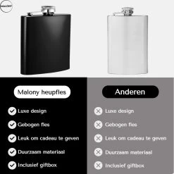 Bestel de Malony® heupfles vandaag nog en maak het weer makkelijk om jouw lievelingsdrankje mee te nemen!