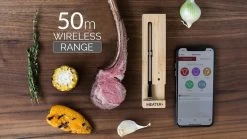 De Meater is ’s werelds beste volledig draadloze slimme vleesthermometer. De probe beschikt over 2 verschillende sensoren en meet zowel de kern temperatuur van uw gerecht als de omgeving temperatuur van uw BBQ, Grill, Smoker, Pan of Oven. Met behulp van de gratis App monitort u eenvoudig draadloos beide temperaturen tot wel een afstand van 50 meter. De Meater laat u de resterende bereidingstijd zien en stuurt u een alert wanneer het gerecht de gewenste kern temperatuur heeft behaald.