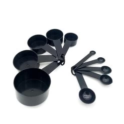 Een complete 10-delige set van maatbekers (cups) en maatlepels (teaspoons & tablespoons). Geschikt voor het afmeten van vele ingredienten tijdens het koken en bakken. De Amerikaanse maten zorgen ervoor dat de juiste hoeveelheid makkelijk af te lezen is.