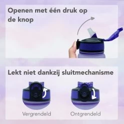 Seniq Motivatie Waterfles – 1 Liter – Drinkfles Met Tijdmarkering – Rietje – Paars Oranje