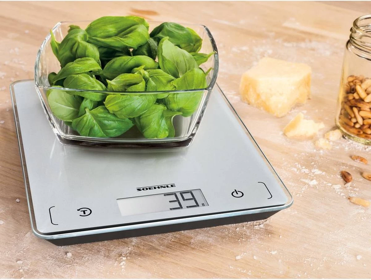 Een weegschaal waarmee koken en bakken nóg leuker wordt! Digitale keukenweegschaal Page Comfort 100 valt op door zijn strakke puristische design en door het grote, zeer goed leesbare lcd-display. Weegt maximaal 5 kg, op 1 gram nauwkeurig. Met de handige bijweegfunctie kun je alle ingrediënten toevoegen in dezelfde schaal en ze toch afzonderlijk wegen. Bijzonder praktisch! Dankzij het grote weegplateau blijft het display ook goed zichtbaar bij grote schalen en pannen. Dankzij de gepatenteerde sensor-touch-functie is de Page Comfort 100 bijzonder comfortabel te bedienen en schoon te maken. Deze digitale keukenweegschaal is bijzonder gemakkelijk plaatsbesparend op te bergen: tussen de kookboeken, in een la, of hangend aan de wand. Klaar met wegen? Dan schakelt de weegschaal zich automatisch uit. Dat bespaart veel energie. De meegeleverde batterijen gaan zelfs bij tweemaal daags gebruik wel twee jaar mee.