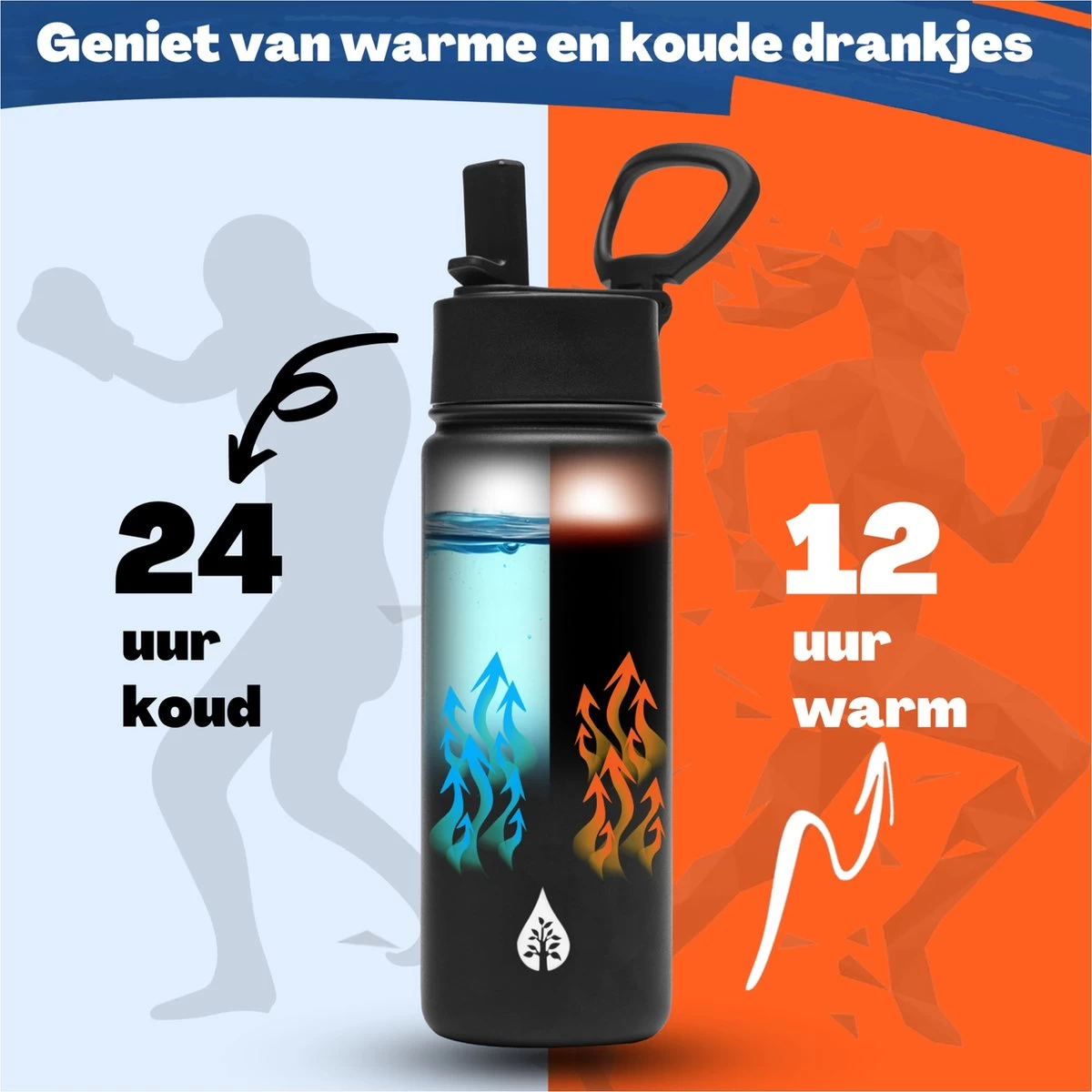 De sportfles heeft een inhoud van 500 milliliter. Zo kun je de hele dag door genieten van jouw warme of koude drankje. Het prachtige design is uitgerust met een dubbele wand en is volledig BPA-vrij. Dankzij de speciale stevige, draaidop is de thermosfles ook nog eens 100% lekvrij. Superhandig voor tijdens het sporten of een lange wandeling in het bos!