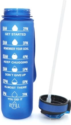 Vergeet jij het vaak om genoeg te drinken? Het aanbevolen aantal liter per dag is 1.5 tot 2 liter per dag. Het is belangrijk om genoeg vocht per dag binnen te krijgen. Het helpt voor je spijsverteringsstelsel, voedings – en afvalstoffen te transporteren. Met deze handige waterfles drink je nooit te weinig en weet je altijd precies hoeveel je hebt gedronken.