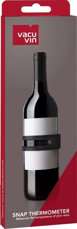 Wijnthermometer – Snap – Grijs van het merk Vacuvin. Deze thermometer is eenvoudig in gebruik doordat deze om de fles heen klemt, ook de temperatuur is heel duidelijk af te lezen. Op deze manier kunt u uw wijn altijd op de perfecte temperatuur drinken!