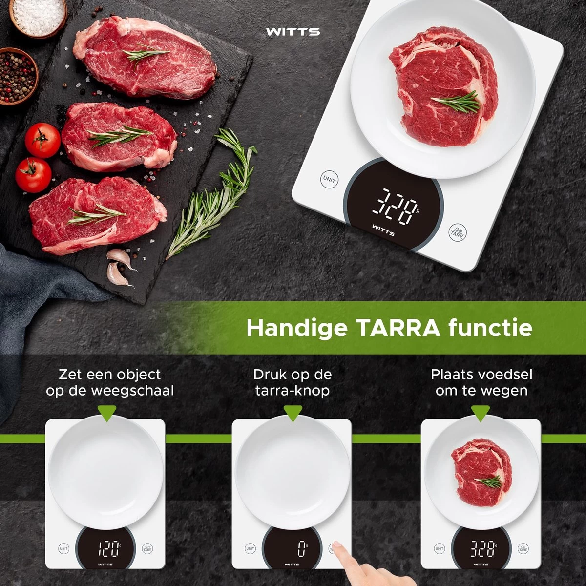 De digitale keukenweegschaal van Witts